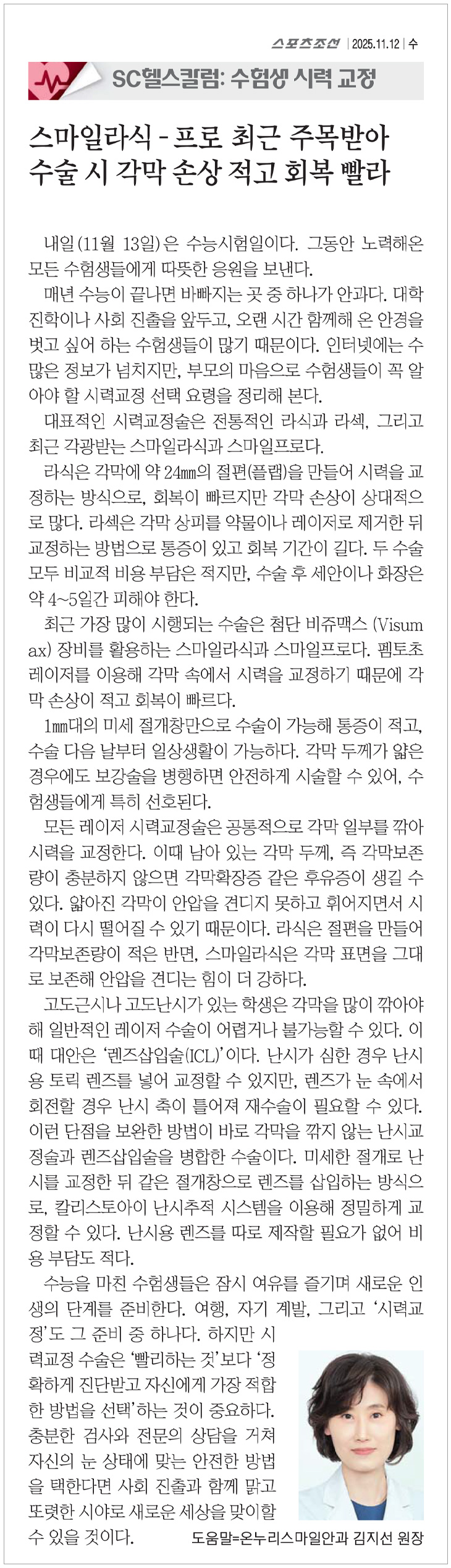 스포츠조선 칼럼 - 김지선원장