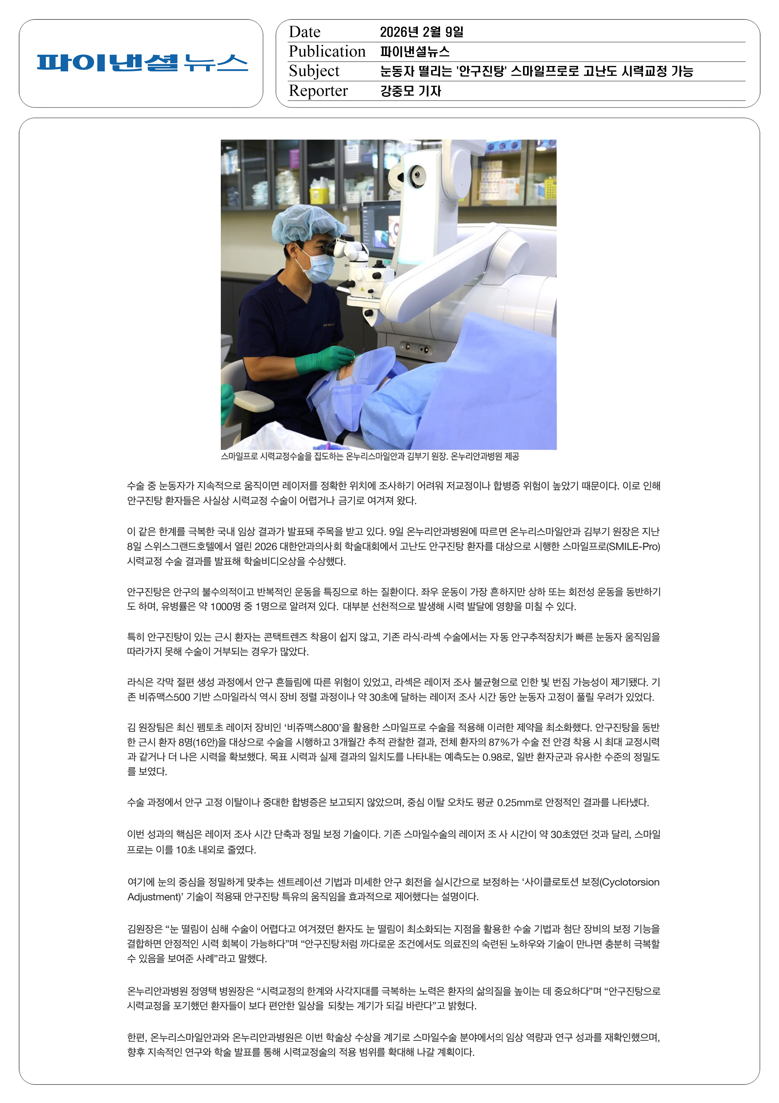눈동자 떨리는 "안구진탕" 스마일프로로 고난도 시력교 정 가능