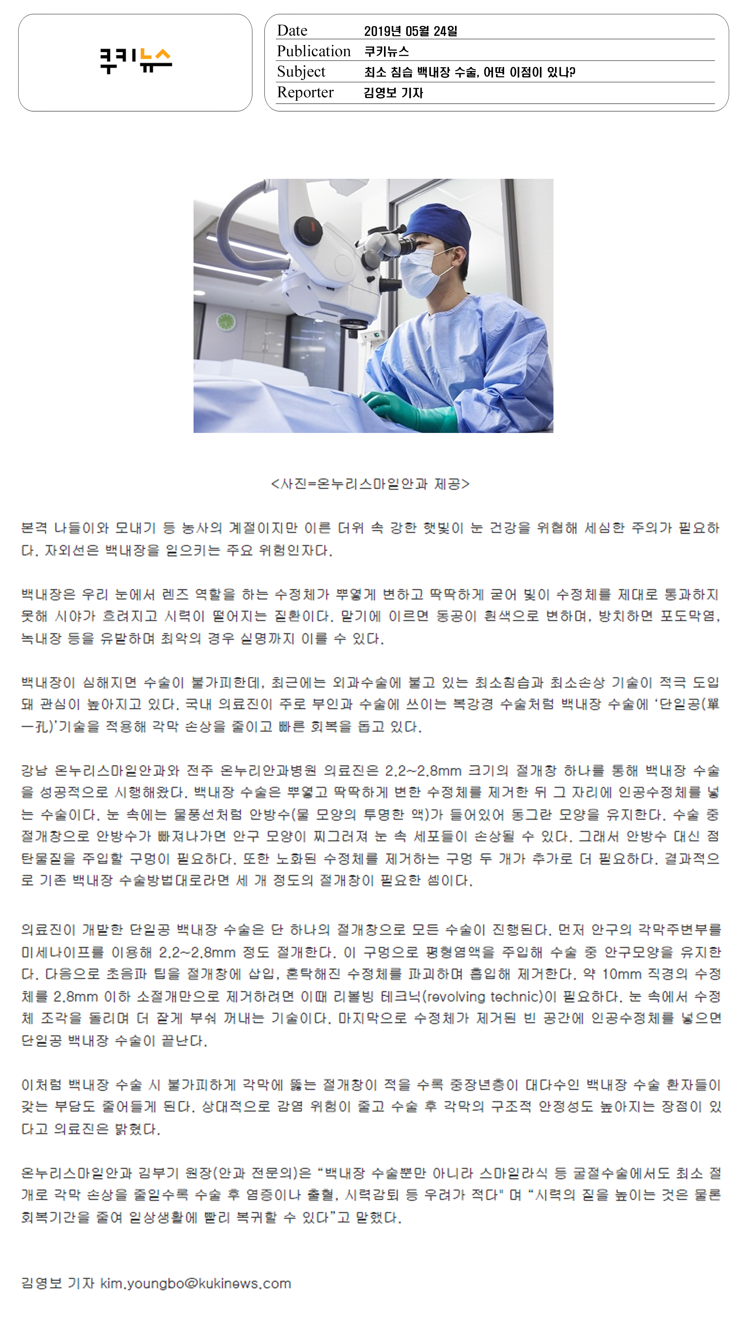 최소 침습 백내장 수술, 어떤 이점이 있나?